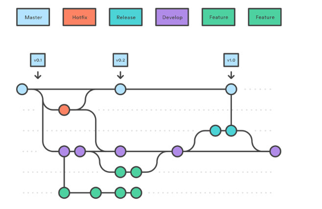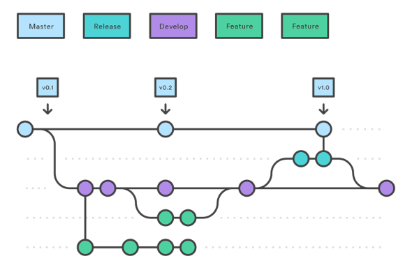 - 브랜치 생성에 규칙을 만들어서 협업을 유연하게 하는 방법론