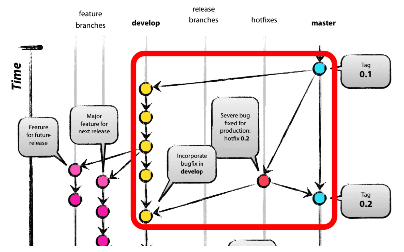 - 버그를 잡는 사람이 일하는 동안에도 다른 사람들은 develop 브랜치에서 하던 일을 진행 할 수 있다.