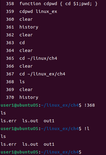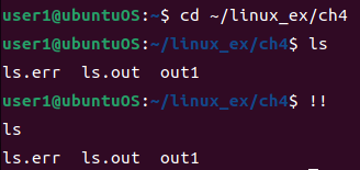 | !! | 바로 직전에 실행한 명령을 재실행한다. |