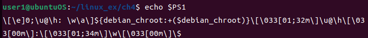 - 위의 설정값을 확인하면 \e, \u, \h 등 의미를 알 수 없는 문자로 구성되어 있다. 이렇게 \로 시작하는 특별한 문자들을 이스케이프 문자라고 한다.
