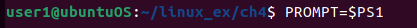 - 프롬프트를 변경하는것은 환경 변수 PS1에 새로운 형태의 문자열을 지정하는 것이다. PS1의 값을 바꾸기전에 먼저 현재 PS1의 값을 임시 변수에 저장해둔다.