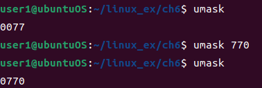 - umask [마스크값] 명령으로 umask 값을 변경하였다.