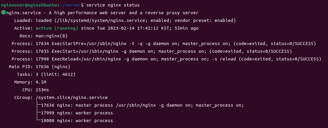 그다음 nginx를 restart 하거나 reload 하면 설정 파일의 내용들이 적용됩니다.