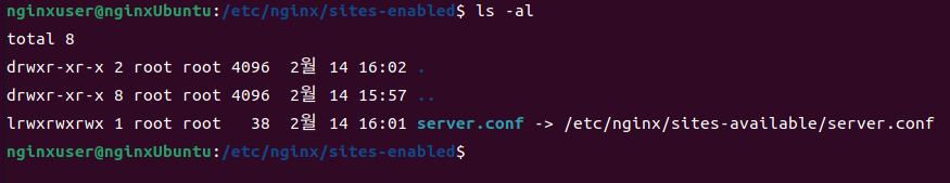 그 후 아래 명령어를 통해 /etc/nginx/sites-enabled에 심볼릭 링크를 생성해줍니다.