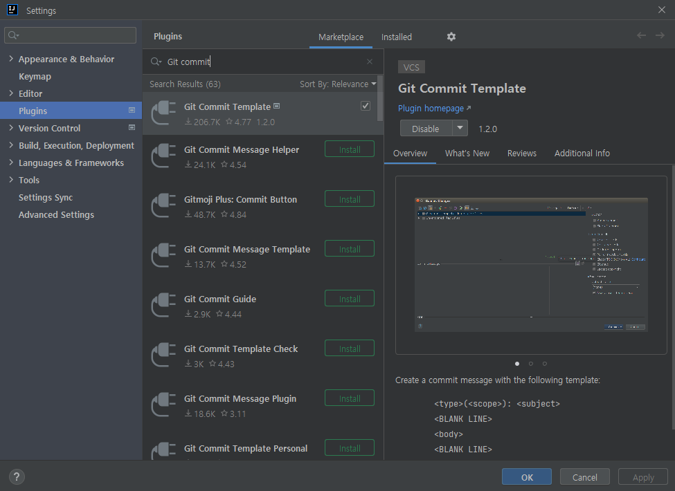 commit 할 때 해당 plugin을 사용하면 commit 템플릿 형식에 맞게 작성 할 수 있습니다.