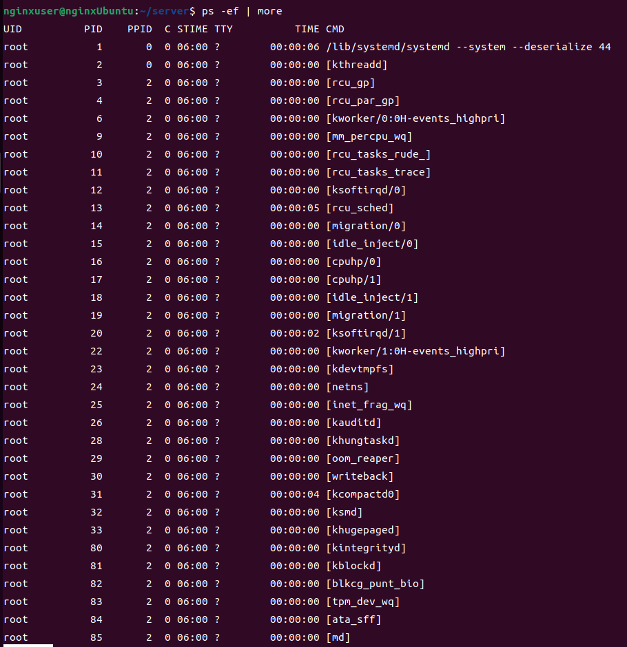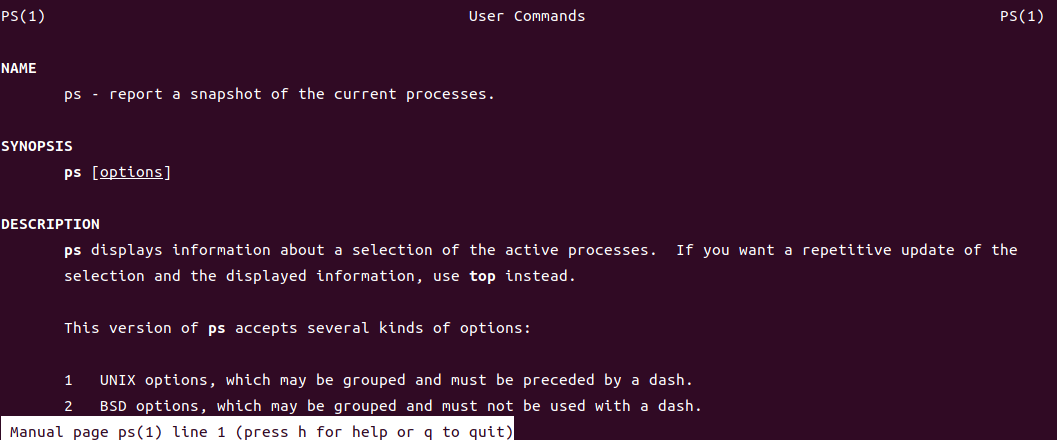 - 현재 실행 중인 프로세스에 대한 정보를 출력한다.