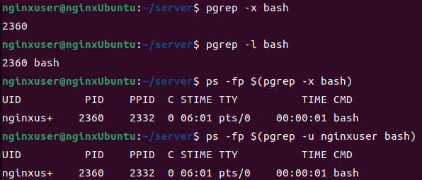 - 지정한 패턴과 일치하는 프로세스의 정보를 출력한다.