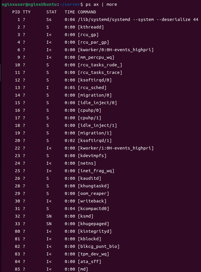 - ps a옵션에서 나오는 STAT에 사용되는 문자의 의미